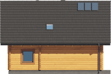 Wysokość ścianki kolankowej: 1.2 m. Strop: drewniany. Pokrycie dachu: dachówka ceramiczna. Ściany zewnętrzne: płazy drewniane + wełna mineralna + deska. Ściany wewnętrzne: płazy drewniane. Typ ogrzewania: kocioł gazowy lub kocioł na paliwo stałe. Instalacje dodatkowe: instalacja solarna.