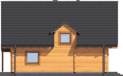 Wysokość ścianki kolankowej: 1.21 m. Strop: drewniany. Pokrycie dachu: dachówka gontopodobna Gerard Corona. Ściany zewnętrzne: płazy drewniane + wełna mineralna + deska. Ściany wewnętrzne: płazy drewniane. Typ ogrzewania: kocioł gazowy lub kocioł na paliwo stałe.