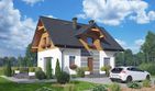 Graficzne opracowanie rzutów poglądowych widocznych na karcie projektu zostało wykonane przez Extradom.pl. Prezentowane przez Extradom.pl wizualizacje wykonane zostały przez autora projektu i należy poczytywać je jedynie za przykład i propozycję wykończenia, wizję architektoniczną autora projektu. Ostateczne wykończenie budynku może nastąpić na wiele sposobów. Szczegółowe rozwiązania zastosowane w oferowanej dokumentacji - w tym również ilość, lokalizacje i wygląd okien, drzwi, kominów - mogą w niewielkim stopniu różnić się od prezentowanej wizualizacji budynku.