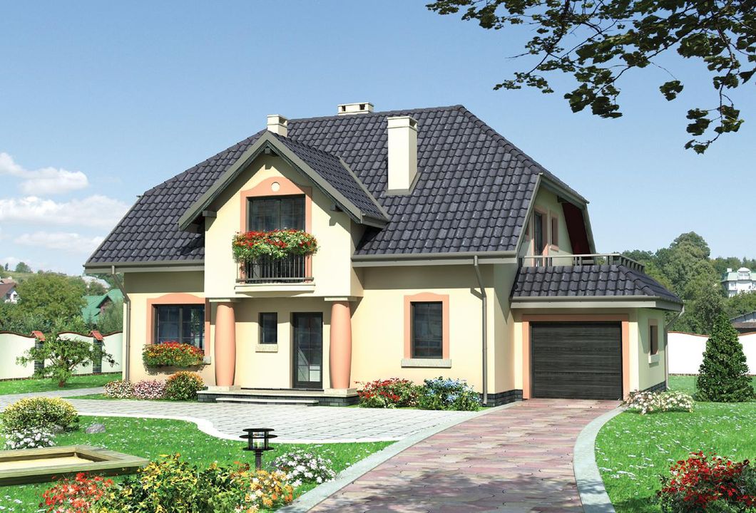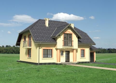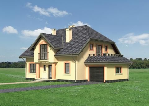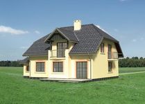 Graficzne opracowanie rzutów poglądowych widocznych na karcie projektu zostało wykonane przez Extradom.pl. Prezentowane przez Extradom.pl wizualizacje wykonane zostały przez autora projektu i należy poczytywać je jedynie za przykład i propozycję wykończenia, wizję architektoniczną autora projektu. Ostateczne wykończenie budynku może nastąpić na wiele sposobów. Szczegółowe rozwiązania zastosowane w oferowanej dokumentacji - w tym również ilość, lokalizacje i wygląd okien, drzwi, kominów - mogą w niewielkim stopniu różnić się od prezentowanej wizualizacji budynku.