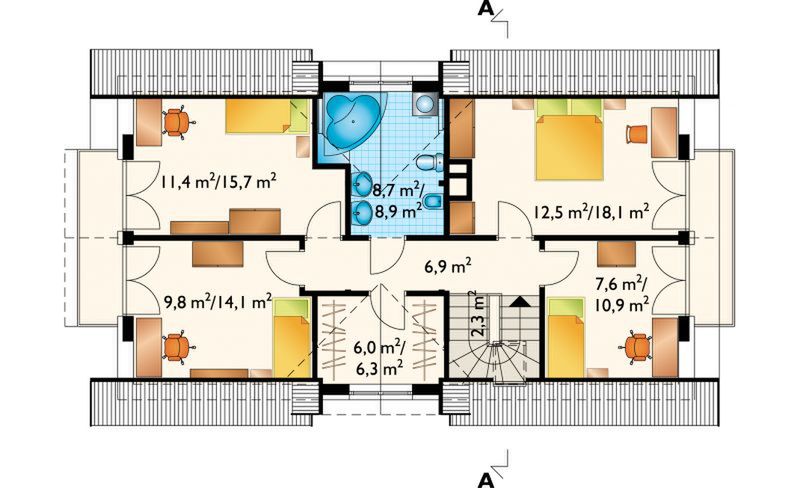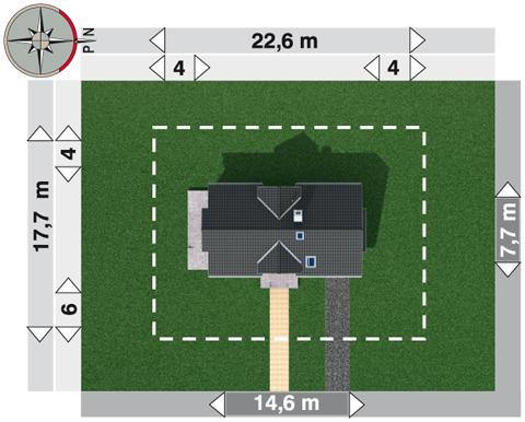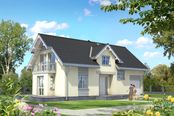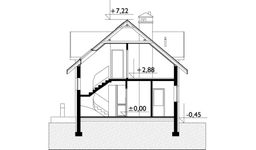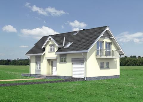Graficzne opracowanie rzutów poglądowych widocznych na karcie projektu zostało wykonane przez Extradom.pl. Prezentowane przez Extradom.pl wizualizacje wykonane zostały przez autora projektu i należy poczytywać je jedynie za przykład i propozycję wykończenia, wizję architektoniczną autora projektu. Ostateczne wykończenie budynku może nastąpić na wiele sposobów. Szczegółowe rozwiązania zastosowane w oferowanej dokumentacji - w tym również ilość, lokalizacje i wygląd okien, drzwi, kominów - mogą w niewielkim stopniu różnić się od prezentowanej wizualizacji budynku.
