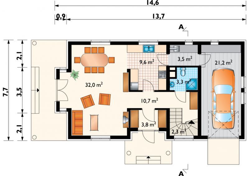 Technologia i konstrukcja: murowana – ceramika. Ściany zewnętrzne: cegła kratówka + styropian. Ściany wewnętrzne: cegła kratówka. Strop: żelbetowy. Konstrukcja dachu: drewniana, jętkowa. Rodzaj schodów: żelbetowe. Typ ogrzewania: kocioł na gaz. Pokrycie dachu: dachówka ceramiczna lub blacha dachówkowa. Elewacja: tynk cienkowarstwowy, okładzina ceramiczna, deskowanie.