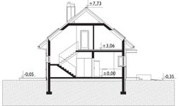 Graficzne opracowanie rzutów poglądowych widocznych na karcie projektu zostało wykonane przez Extradom.pl. Prezentowane przez Extradom.pl wizualizacje wykonane zostały przez autora projektu i należy poczytywać je jedynie za przykład i propozycję wykończenia, wizję architektoniczną autora projektu. Ostateczne wykończenie budynku może nastąpić na wiele sposobów. Szczegółowe rozwiązania zastosowane w oferowanej dokumentacji - w tym również ilość, lokalizacje i wygląd okien, drzwi, kominów - mogą w niewielkim stopniu różnić się od prezentowanej wizualizacji budynku.