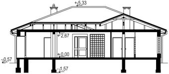 Graficzne opracowanie rzutów poglądowych widocznych na karcie projektu zostało wykonane przez Extradom.pl. Prezentowane przez Extradom.pl wizualizacje wykonane zostały przez autora projektu i należy poczytywać je jedynie za przykład i propozycję wykończenia, wizję architektoniczną autora projektu. Ostateczne wykończenie budynku może nastąpić na wiele sposobów. Szczegółowe rozwiązania zastosowane w oferowanej dokumentacji - w tym również ilość, lokalizacje i wygląd okien, drzwi, kominów - mogą w niewielkim stopniu różnić się od prezentowanej wizualizacji budynku.
