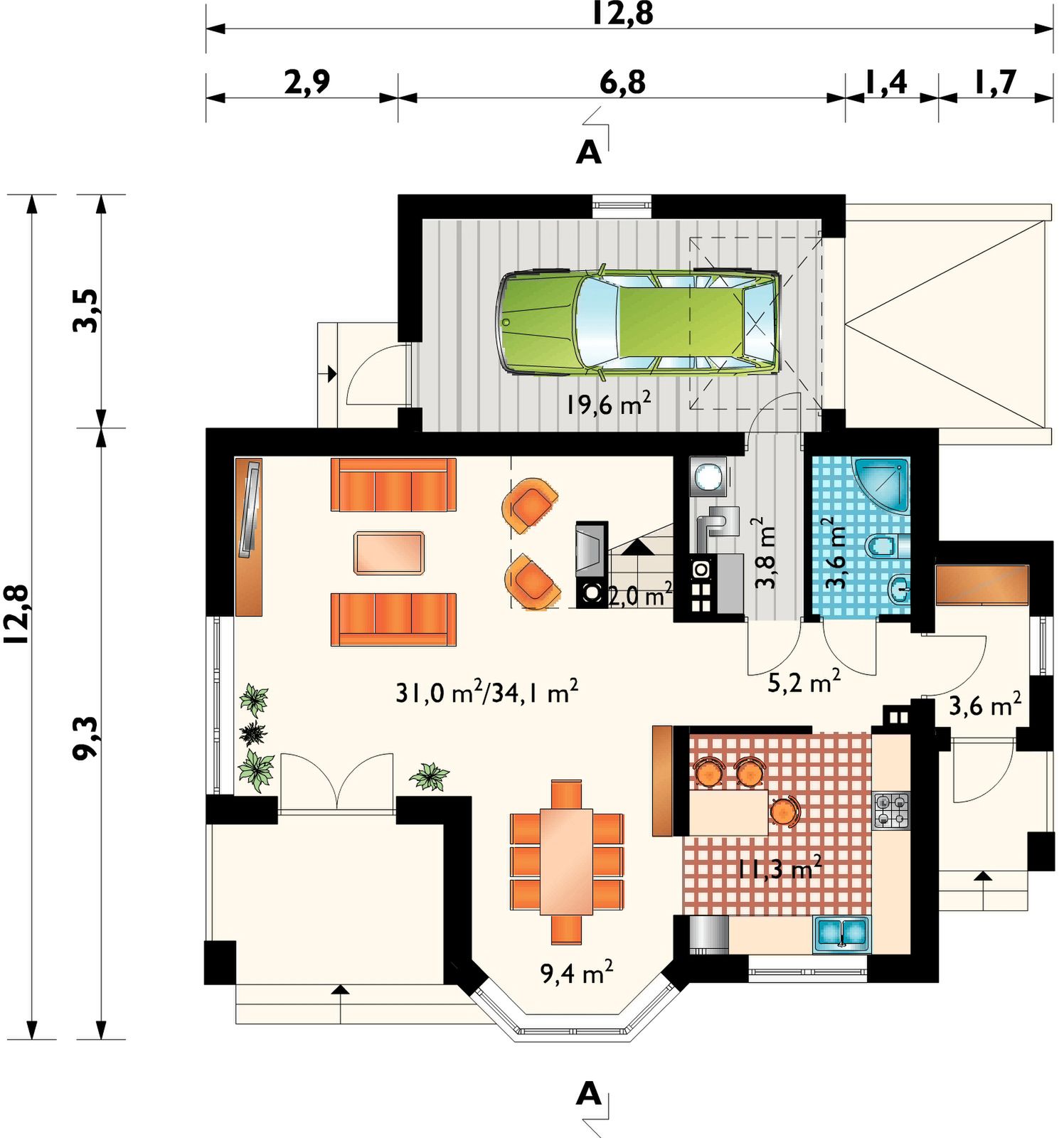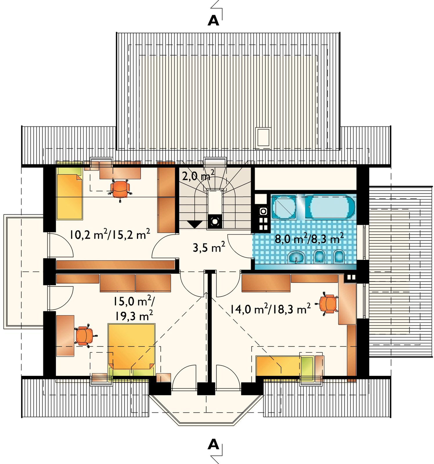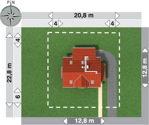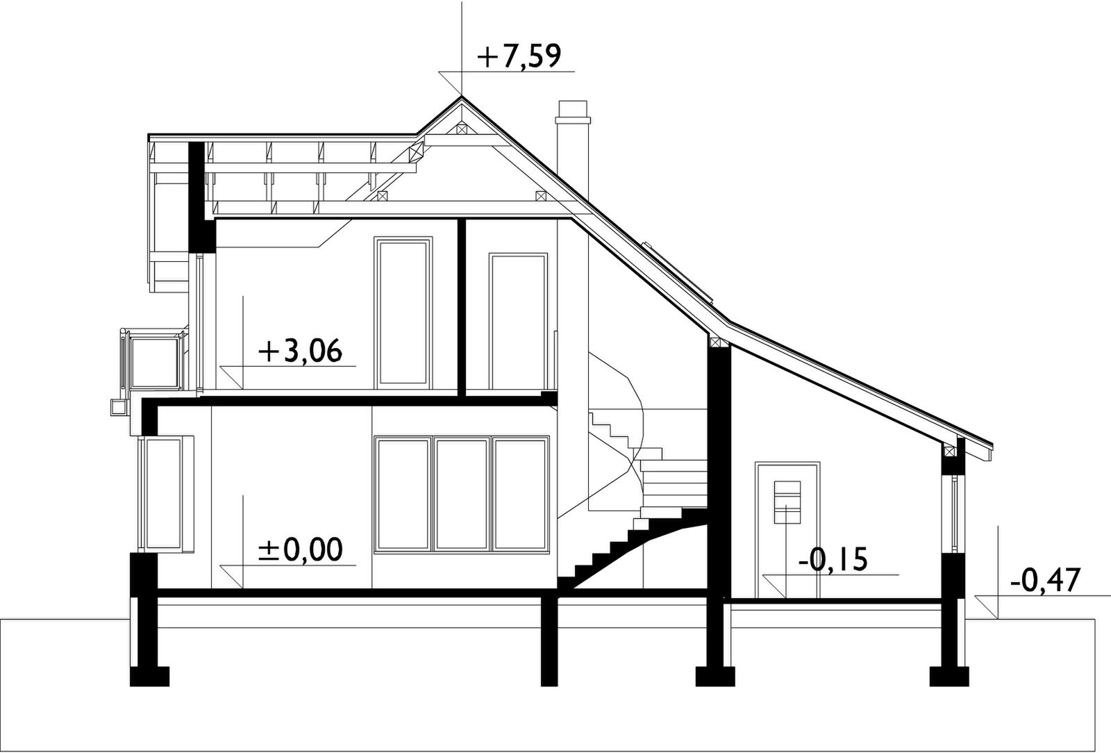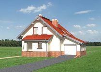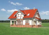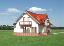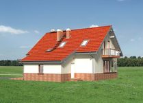 Graficzne opracowanie rzutów poglądowych widocznych na karcie projektu zostało wykonane przez Extradom.pl. Prezentowane przez Extradom.pl wizualizacje wykonane zostały przez autora projektu i należy poczytywać je jedynie za przykład i propozycję wykończenia, wizję architektoniczną autora projektu. Ostateczne wykończenie budynku może nastąpić na wiele sposobów. Szczegółowe rozwiązania zastosowane w oferowanej dokumentacji - w tym również ilość, lokalizacje i wygląd okien, drzwi, kominów - mogą w niewielkim stopniu różnić się od prezentowanej wizualizacji budynku.