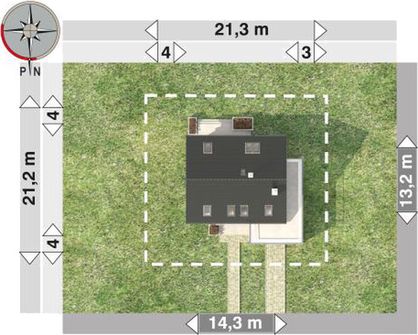 Graficzne opracowanie rzutów poglądowych widocznych na karcie projektu zostało wykonane przez Extradom.pl. Prezentowane przez Extradom.pl wizualizacje wykonane zostały przez autora projektu i należy poczytywać je jedynie za przykład i propozycję wykończenia, wizję architektoniczną autora projektu. Ostateczne wykończenie budynku może nastąpić na wiele sposobów. Szczegółowe rozwiązania zastosowane w oferowanej dokumentacji - w tym również ilość, lokalizacje i wygląd okien, drzwi, kominów - mogą w niewielkim stopniu różnić się od prezentowanej wizualizacji budynku.