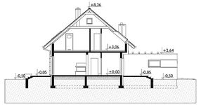 Graficzne opracowanie rzutów poglądowych widocznych na karcie projektu zostało wykonane przez Extradom.pl. Prezentowane przez Extradom.pl wizualizacje wykonane zostały przez autora projektu i należy poczytywać je jedynie za przykład i propozycję wykończenia, wizję architektoniczną autora projektu. Ostateczne wykończenie budynku może nastąpić na wiele sposobów. Szczegółowe rozwiązania zastosowane w oferowanej dokumentacji - w tym również ilość, lokalizacje i wygląd okien, drzwi, kominów - mogą w niewielkim stopniu różnić się od prezentowanej wizualizacji budynku.