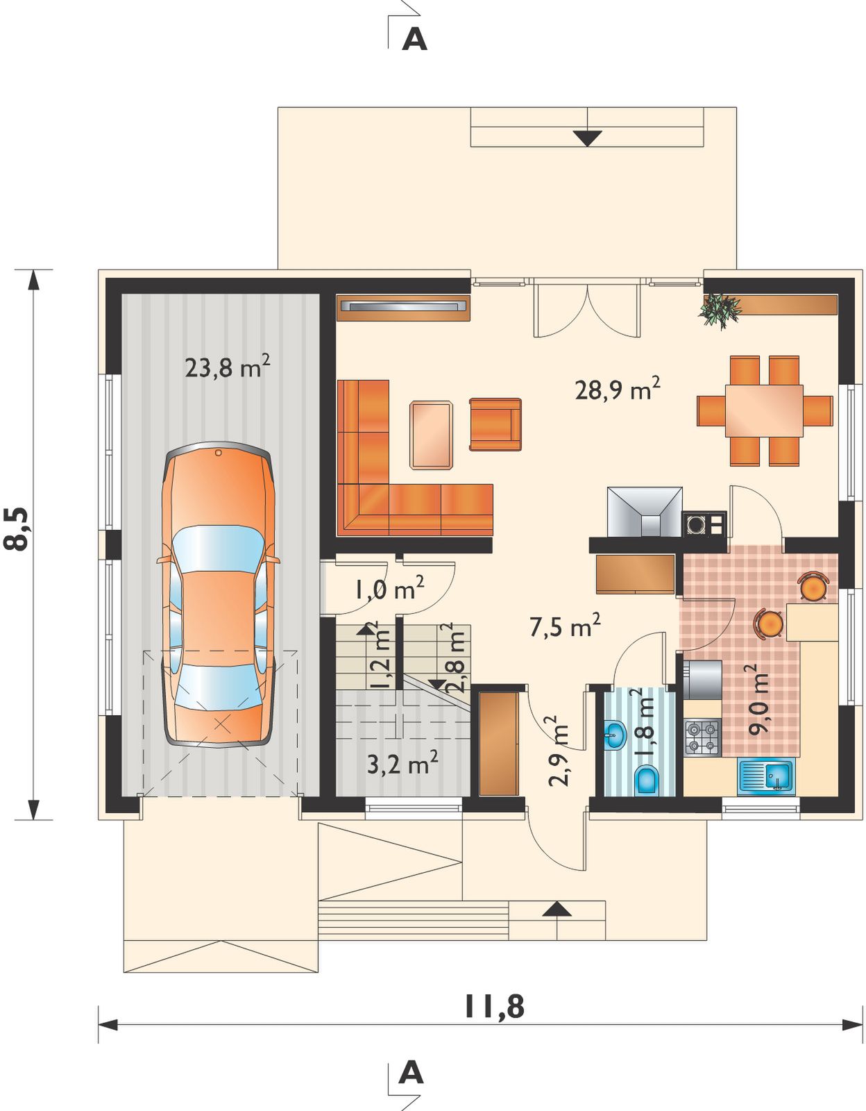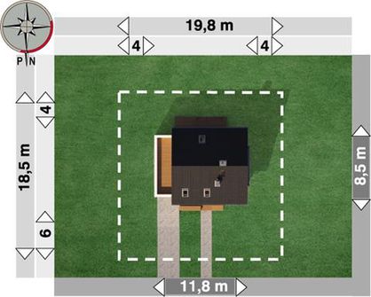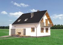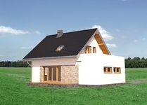 Graficzne opracowanie rzutów poglądowych widocznych na karcie projektu zostało wykonane przez Extradom.pl. Prezentowane przez Extradom.pl wizualizacje wykonane zostały przez autora projektu i należy poczytywać je jedynie za przykład i propozycję wykończenia, wizję architektoniczną autora projektu. Ostateczne wykończenie budynku może nastąpić na wiele sposobów. Szczegółowe rozwiązania zastosowane w oferowanej dokumentacji - w tym również ilość, lokalizacje i wygląd okien, drzwi, kominów - mogą w niewielkim stopniu różnić się od prezentowanej wizualizacji budynku.