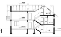 Graficzne opracowanie rzutów poglądowych widocznych na karcie projektu zostało wykonane przez Extradom.pl. Prezentowane przez Extradom.pl wizualizacje wykonane zostały przez autora projektu i należy poczytywać je jedynie za przykład i propozycję wykończenia, wizję architektoniczną autora projektu. Ostateczne wykończenie budynku może nastąpić na wiele sposobów. Szczegółowe rozwiązania zastosowane w oferowanej dokumentacji - w tym również ilość, lokalizacje i wygląd okien, drzwi, kominów - mogą w niewielkim stopniu różnić się od prezentowanej wizualizacji budynku.