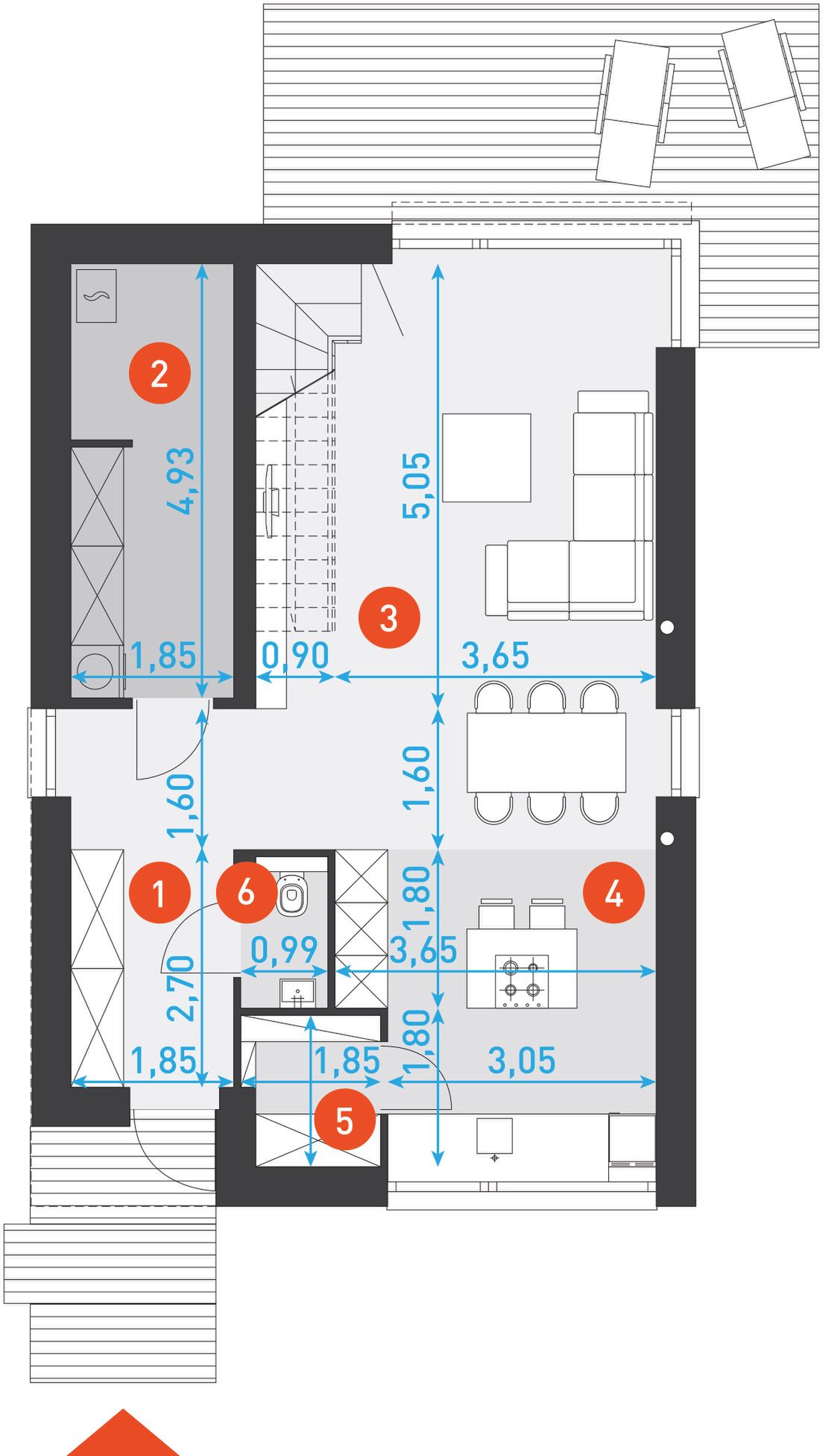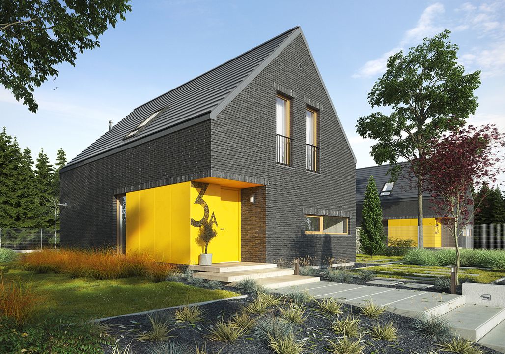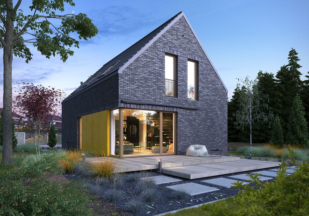 Konstrukcja: zgodna z normami EUROKOD. Fundamenty: tradycyjne ławy i stopy żelbetowe. Ściany: bloczek silikatowy + wełna mineralna i styropian na etapie adaptacji można zamienić na inny materiał o tej samej wytrzymałości na ściskanie 10-15 MPa, np. pustak ceramiczny. Elewacja: płytka kliknierowa ręcznie formowana, płyta elewacyjna HPL materiał dodatkowy podkreślający podziały elewacji, taki jak płytka klinkierowa można zamienić na inny, np. drewno. Stropy: żelbetowe wylewane na etapie adaptacji istnieje możliwość zmiany na stropy gęstożebrowe. Schody: systemowe konstrukcja schodów oraz materiały wykończeniowe przewidziane do indywidualnej aranżacji. Możesz skorzystać z usług naszego partnera. Formularz dostępny w zakładce „kosztorys” Dach: dachówka ceramiczna lub cementowa konstrukcja więźby przewidziana pod pokrycie ciężkie dla I strefy wiatrowej i II strefy śniegowej.