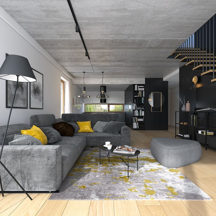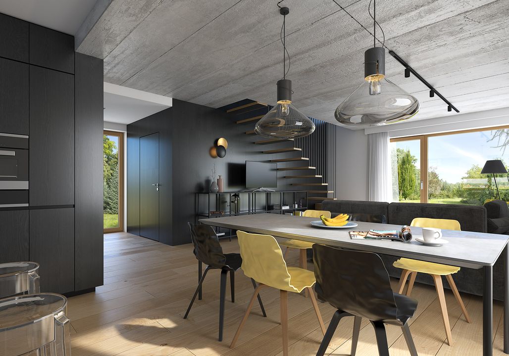 Graficzne opracowanie rzutów poglądowych widocznych na karcie projektu zostało wykonane przez Extradom.pl. Prezentowane przez Extradom.pl wizualizacje wykonane zostały przez autora projektu i należy poczytywać je jedynie za przykład i propozycję wykończenia, wizję architektoniczną autora projektu. Ostateczne wykończenie budynku może nastąpić na wiele sposobów. Szczegółowe rozwiązania zastosowane w oferowanej dokumentacji - w tym również ilość, lokalizacje i wygląd okien, drzwi, kominów - mogą w niewielkim stopniu różnić się od prezentowanej wizualizacji budynku.