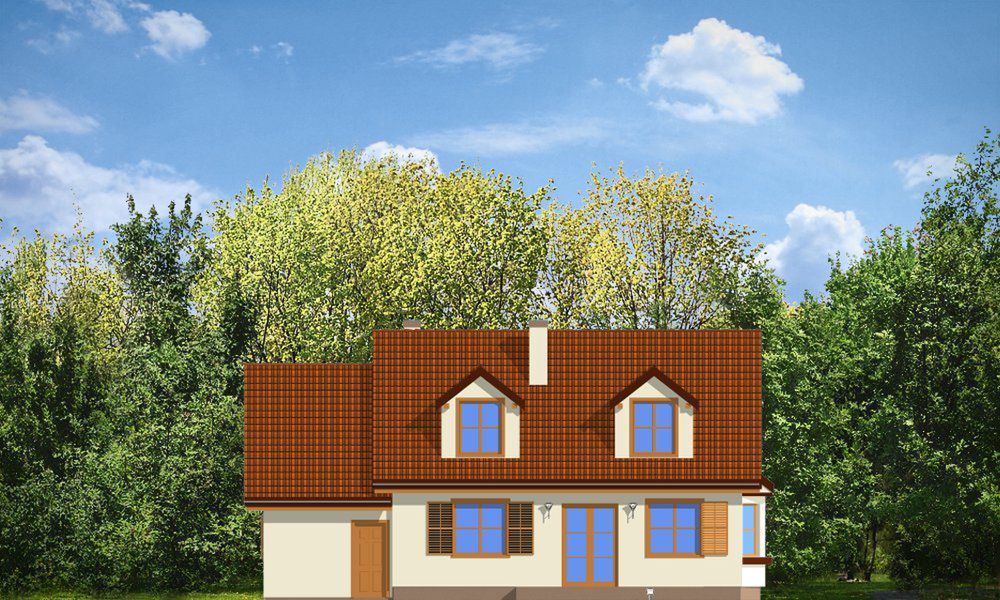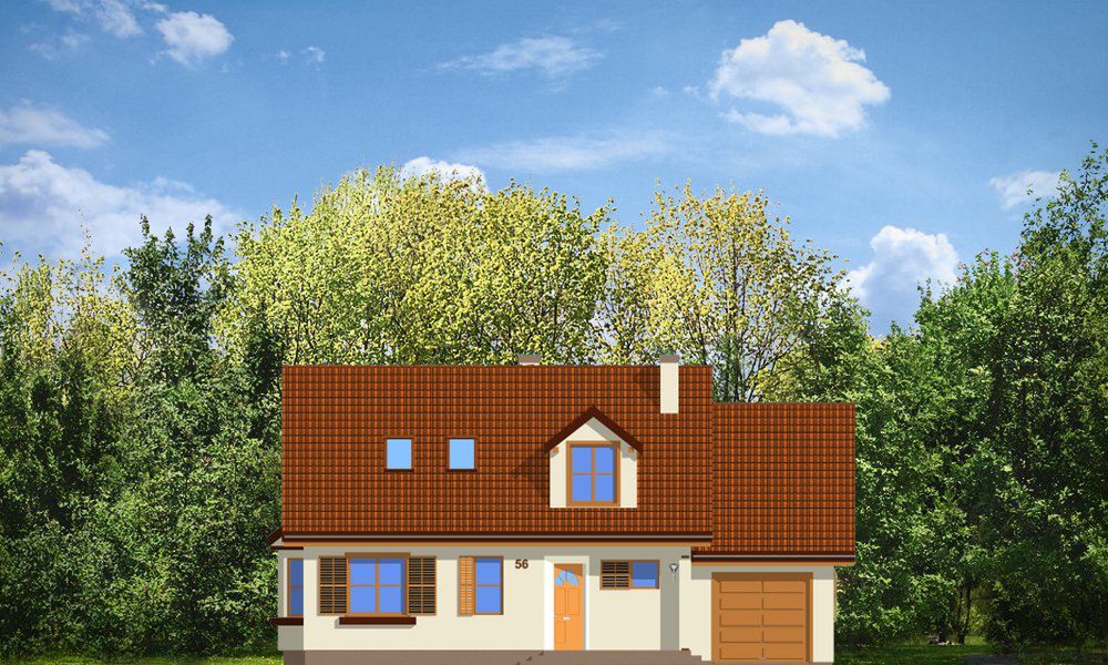 Graficzne opracowanie rzutów poglądowych widocznych na karcie projektu zostało wykonane przez Extradom.pl. Prezentowane przez Extradom.pl wizualizacje wykonane zostały przez autora projektu i należy poczytywać je jedynie za przykład i propozycję wykończenia, wizję architektoniczną autora projektu. Ostateczne wykończenie budynku może nastąpić na wiele sposobów. Szczegółowe rozwiązania zastosowane w oferowanej dokumentacji - w tym również ilość, lokalizacje i wygląd okien, drzwi, kominów - mogą w niewielkim stopniu różnić się od prezentowanej wizualizacji budynku.