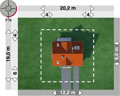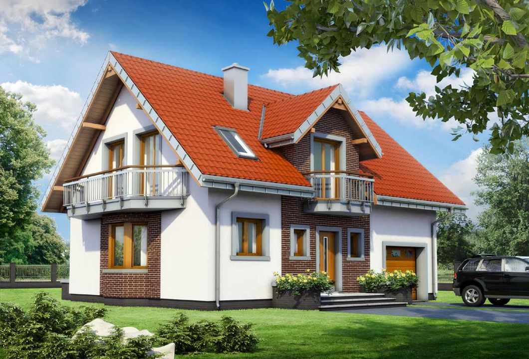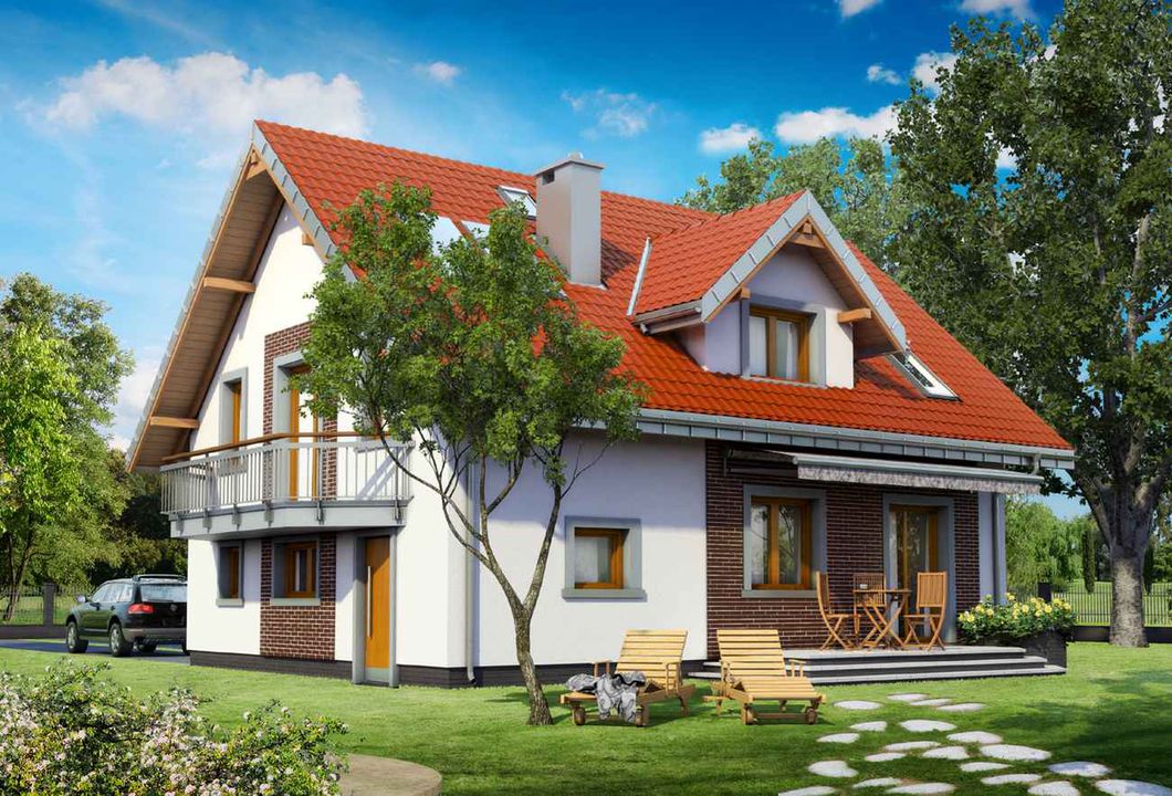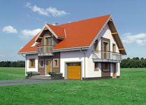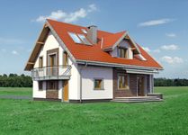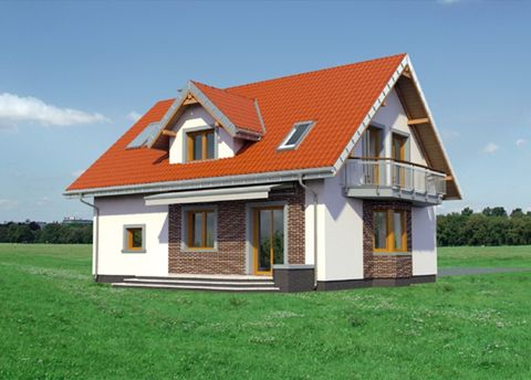 Graficzne opracowanie rzutów poglądowych widocznych na karcie projektu zostało wykonane przez Extradom.pl. Prezentowane przez Extradom.pl wizualizacje wykonane zostały przez autora projektu i należy poczytywać je jedynie za przykład i propozycję wykończenia, wizję architektoniczną autora projektu. Ostateczne wykończenie budynku może nastąpić na wiele sposobów. Szczegółowe rozwiązania zastosowane w oferowanej dokumentacji - w tym również ilość, lokalizacje i wygląd okien, drzwi, kominów - mogą w niewielkim stopniu różnić się od prezentowanej wizualizacji budynku.
