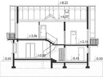 Technologia i konstrukcja: murowana – beton komórkowy. Ściany zewnętrzne: bloczki SOLBET Optimal gr. 24 na zaprawie cienkowarstwowej SICHER BAUTECHNIK + docieplenie wełna mineralna gr. 20 cm firmy ISOVER. Ściany wewnętrzne: bloczki SOLBET Optimal gr. 24 cm i 12 cm na zaprawie cienkowarstwowej. Strop: Vector firmy Konbet Poznań. Konstrukcja dachu: drewniana, krokwiowo-płatwiowa. Rodzaj schodów: żelbetowe. Typ ogrzewania: kocioł na gaz. Wentylacja: mechaniczna. Pokrycie dachu: dachówka betonowa lub ceramiczna BRAAS. Elewacja: tynk firmy SICHER BAUTECHNIK, częściowo płytka klinkierowa firmy CERRAD.
