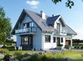 Graficzne opracowanie rzutów poglądowych widocznych na karcie projektu zostało wykonane przez Extradom.pl. Prezentowane przez Extradom.pl wizualizacje wykonane zostały przez autora projektu i należy poczytywać je jedynie za przykład i propozycję wykończenia, wizję architektoniczną autora projektu. Ostateczne wykończenie budynku może nastąpić na wiele sposobów. Szczegółowe rozwiązania zastosowane w oferowanej dokumentacji - w tym również ilość, lokalizacje i wygląd okien, drzwi, kominów - mogą w niewielkim stopniu różnić się od prezentowanej wizualizacji budynku.