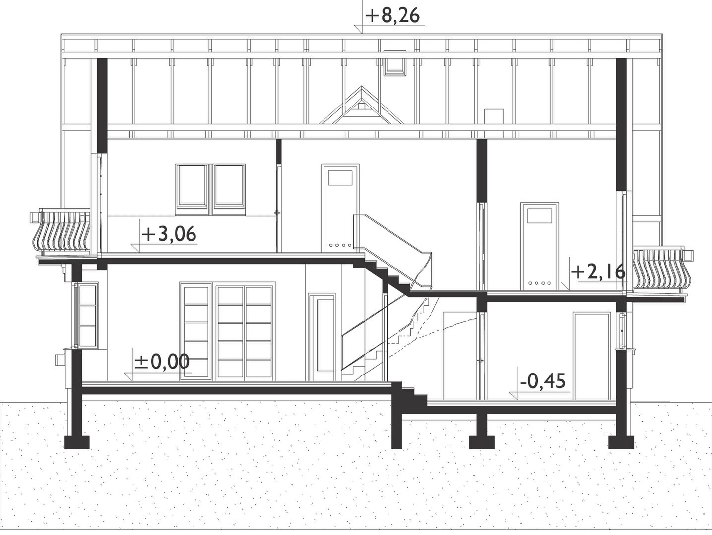 Wersja technologiczna: murowana - beton komórkowy. Strop: żelbetowy monolityczny. Typ schodów: płytowe żelbetowe. Konstrukcja dachu: drewniana krokwiowo-jętkowa. Typ ogrzewania: Kocioł na gaz. Dostępna wersja z pompą ciepła: Tak. Ściany zewnętrzne: 24 cm beton komórkowy. Ściany wewnętrzne: 24 cm beton komórkowy. Ściany wewnętrzne działowe: 12 cm beton komórkowy.