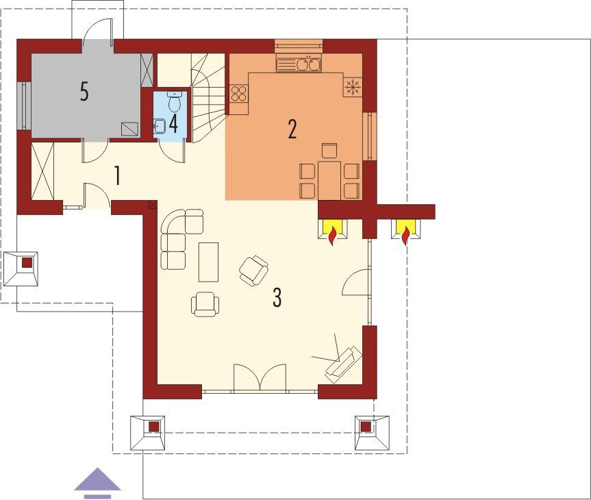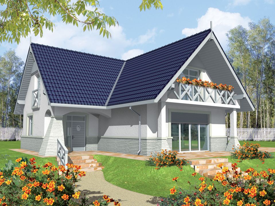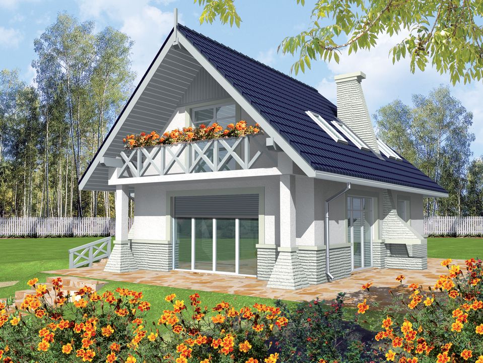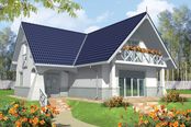 Graficzne opracowanie rzutów poglądowych widocznych na karcie projektu zostało wykonane przez Extradom.pl. Prezentowane przez Extradom.pl wizualizacje wykonane zostały przez autora projektu i należy poczytywać je jedynie za przykład i propozycję wykończenia, wizję architektoniczną autora projektu. Ostateczne wykończenie budynku może nastąpić na wiele sposobów. Szczegółowe rozwiązania zastosowane w oferowanej dokumentacji - w tym również ilość, lokalizacje i wygląd okien, drzwi, kominów - mogą w niewielkim stopniu różnić się od prezentowanej wizualizacji budynku.