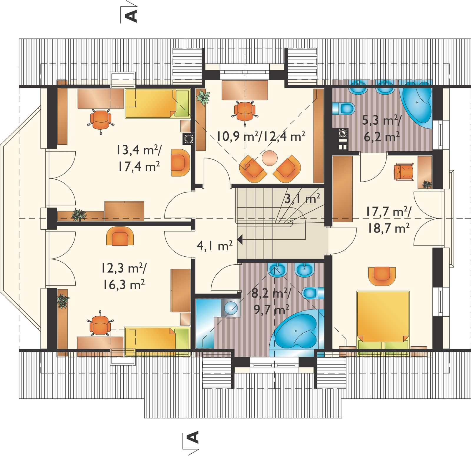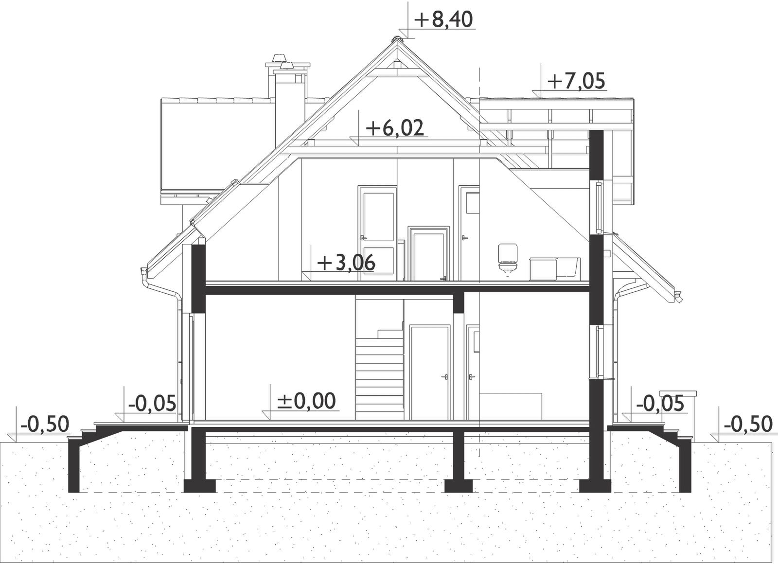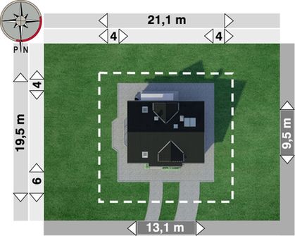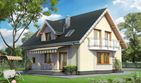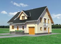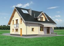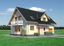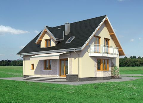 Graficzne opracowanie rzutów poglądowych widocznych na karcie projektu zostało wykonane przez Extradom.pl. Prezentowane przez Extradom.pl wizualizacje wykonane zostały przez autora projektu i należy poczytywać je jedynie za przykład i propozycję wykończenia, wizję architektoniczną autora projektu. Ostateczne wykończenie budynku może nastąpić na wiele sposobów. Szczegółowe rozwiązania zastosowane w oferowanej dokumentacji - w tym również ilość, lokalizacje i wygląd okien, drzwi, kominów - mogą w niewielkim stopniu różnić się od prezentowanej wizualizacji budynku.
