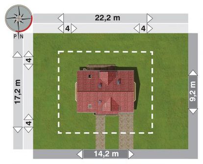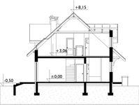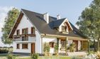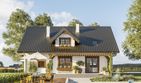 Graficzne opracowanie rzutów poglądowych widocznych na karcie projektu zostało wykonane przez Extradom.pl. Prezentowane przez Extradom.pl wizualizacje wykonane zostały przez autora projektu i należy poczytywać je jedynie za przykład i propozycję wykończenia, wizję architektoniczną autora projektu. Ostateczne wykończenie budynku może nastąpić na wiele sposobów. Szczegółowe rozwiązania zastosowane w oferowanej dokumentacji - w tym również ilość, lokalizacje i wygląd okien, drzwi, kominów - mogą w niewielkim stopniu różnić się od prezentowanej wizualizacji budynku.