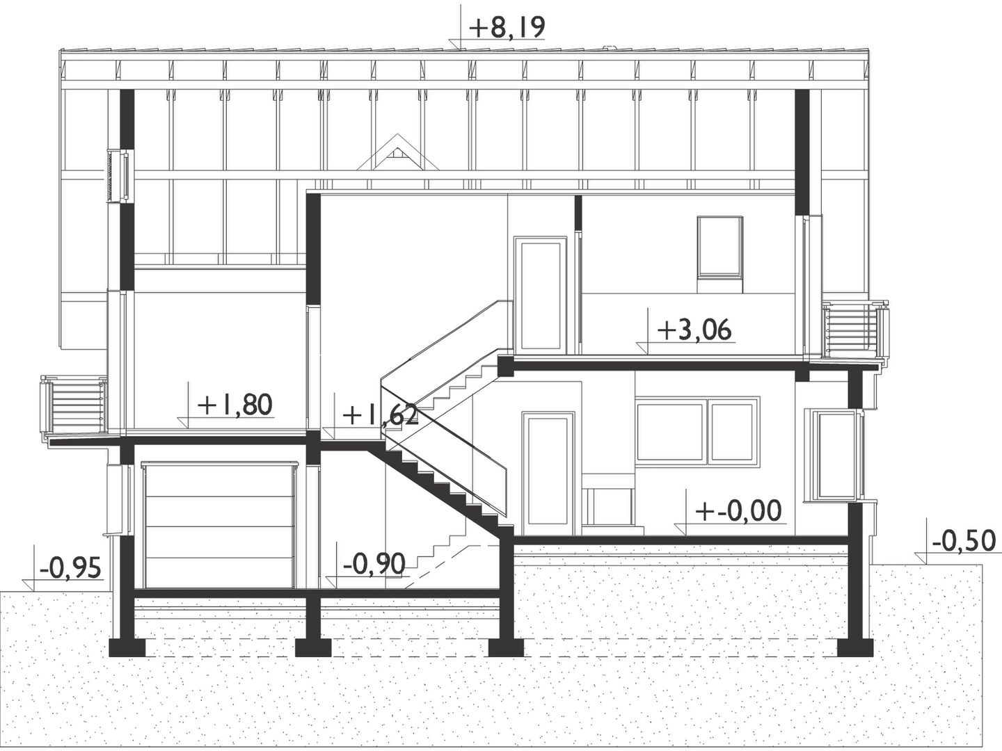 Technologia i konstrukcja: murowana – beton komórkowy. Ściany zewnętrzne: bloczki SOLBET Optimal gr. 24 cm + docieplenie gr. 20 cm. Ściany wewnętrzne: konstrukcyjne: bloczki SOLBET Optimal gr. 24 cm, działowe: bloczki SOLBET Optimal gr. 12 cm. Strop: lekki strop panelowy Smart firmy KONBET. Konstrukcja dachu: drewniana, jętkowa. Rodzaj schodów: żelbetowe. Typ ogrzewania: kocioł na gaz. Pokrycie dachu: dachówka betonowa lub ceramiczna BRAAS. Elewacja: tynki firmy SICHER BAUTECHNIK.