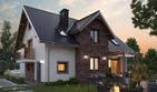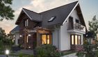 Graficzne opracowanie rzutów poglądowych widocznych na karcie projektu zostało wykonane przez Extradom.pl. Prezentowane przez Extradom.pl wizualizacje wykonane zostały przez autora projektu i należy poczytywać je jedynie za przykład i propozycję wykończenia, wizję architektoniczną autora projektu. Ostateczne wykończenie budynku może nastąpić na wiele sposobów. Szczegółowe rozwiązania zastosowane w oferowanej dokumentacji - w tym również ilość, lokalizacje i wygląd okien, drzwi, kominów - mogą w niewielkim stopniu różnić się od prezentowanej wizualizacji budynku.