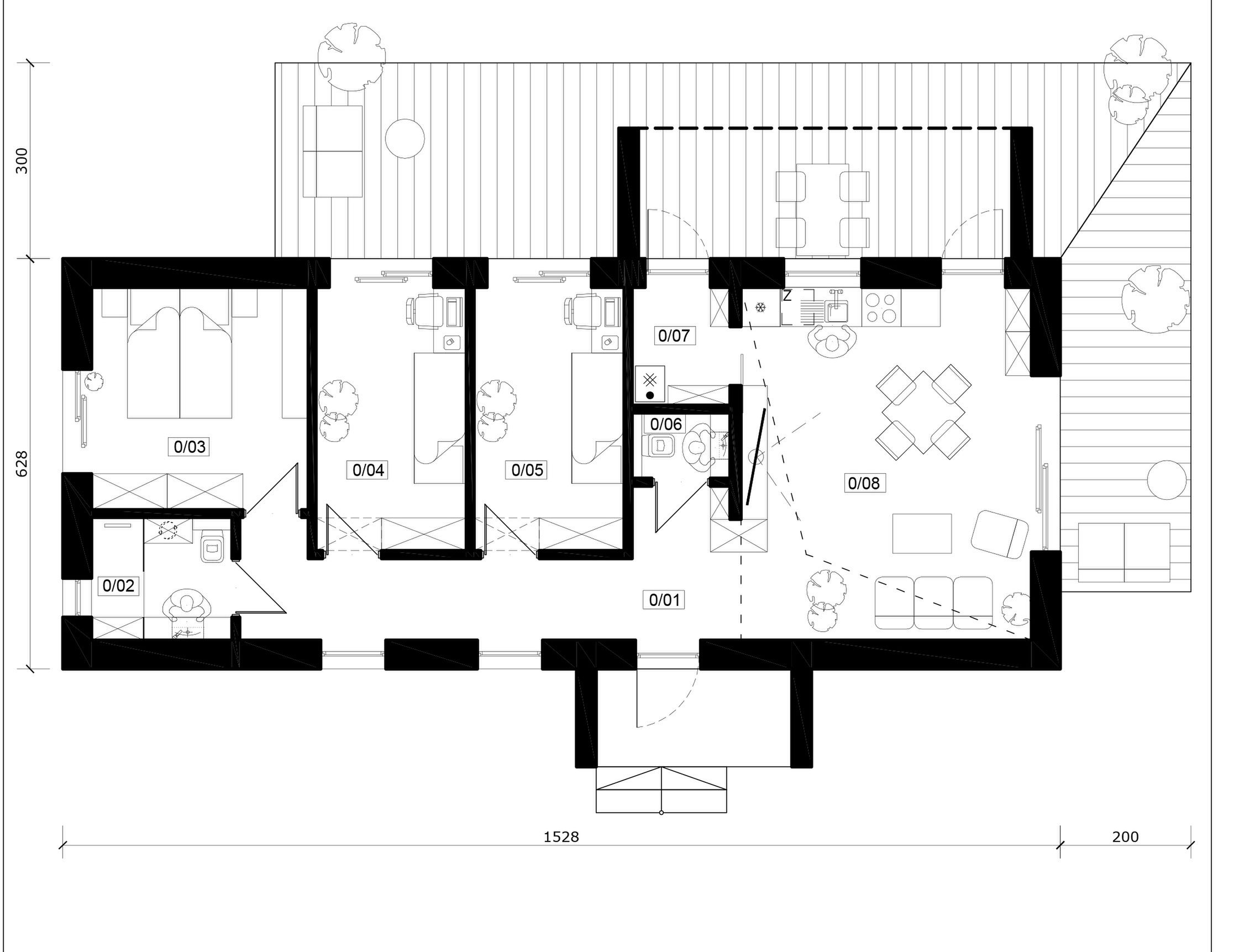 Graficzne opracowanie rzutów poglądowych widocznych na karcie projektu zostało wykonane przez Extradom.pl. Prezentowane przez Extradom.pl wizualizacje wykonane zostały przez autora projektu i należy poczytywać je jedynie za przykład i propozycję wykończenia, wizję architektoniczną autora projektu. Ostateczne wykończenie budynku może nastąpić na wiele sposobów. Szczegółowe rozwiązania zastosowane w oferowanej dokumentacji - w tym również ilość, lokalizacje i wygląd okien, drzwi, kominów - mogą w niewielkim stopniu różnić się od prezentowanej wizualizacji budynku.