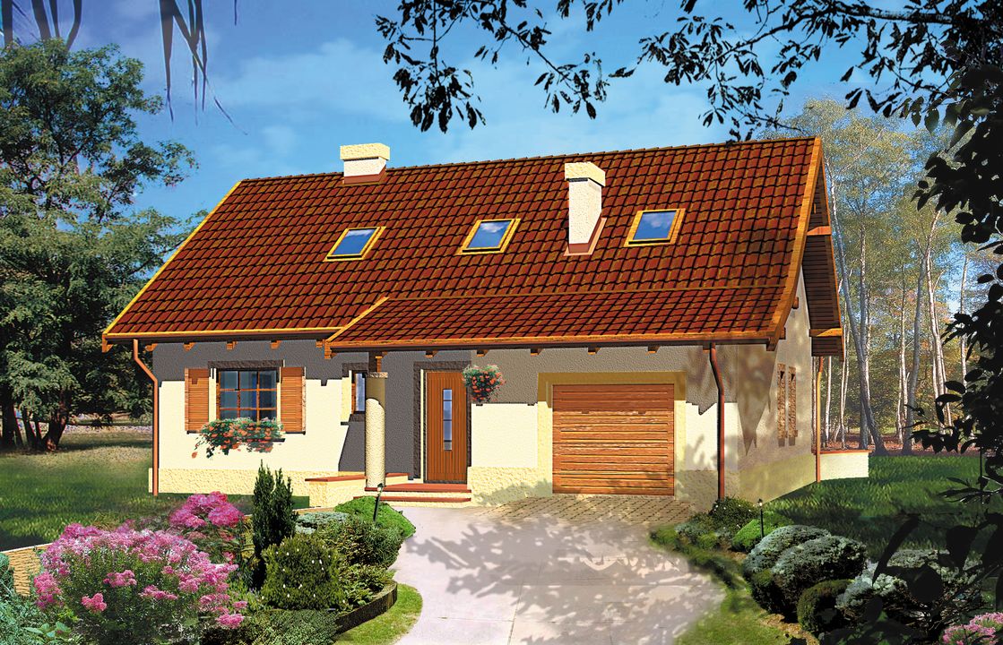 Zdecydowaliśmy się na projekt domu Zorza WRH1019, ponieważ jego konstrukcja jest dość prosta, a na tym zależało nam najbardziej. Jego powierzchnia całkowicie odpowiadała potrzebom naszej rodziny, a ponadto do gustu przypadł nam przewidziany w salonie niezabudowany, wolnostojący kominek.Cały budynek został w naszym przypadku wymurowany z bloczków gazobetonowych, a dach pokryliśmy blachodachówką. Koszty postawienia domu w stanie surowym zamkniętym były dosyć niskie, jednak zdecydowaliśmy się na trochę inne wykończenie niż przewidywał projektant i ten etap był już nieco droższy. Budowa przebiegła w miarę sprawnie, aczkolwiek wykonawcy zgłosili mi dwa niedociągnięcia odnośnie projektu. Pierwszym z nich był brak zaznaczenia na rysunkach sposobu mocowania belek stropowych przy samym kominie. Dodatkowo cieśli nie do końca odpowiadała konstrukcja więźby dachowej. Na szczęście miałem doświadczonych fachowców, którzy razem z kierownikiem budowy potrafili sobie z tym poradzić. Warto jednak zwrócić uwagę na te elementy na etapie adaptacji.Zdecydowaliśmy się na ogrzewanie domu za pomocą pompy ciepła i przyznam szczerze, że jestem naprawdę zadowolony z takiego rozwiązania. Ściany z zewnątrz zostały ocieplone grafitowym styropianem o grubości 15cm. Pod wylewkę wykonawcy położyli taką samą warstwę izolatora, a na poddaszu zastosowałem 35cm skalnej wełny mineralnej marki Roockwool. Budynek doskonale utrzymuje temperaturę. W zimie wewnątrz domu mamy ciepło, a latem przyjemnie chłodno. Wszystko jest więc tak jak powinno być. Kotłownia w projekcie domu Zorza WRH1019 przewidziana jest na piecyk gazowy, jednak jej metraż sprawdził się również przy pompie ciepła. Myślę, że jeśli ktoś chciałby ogrzewać dom paliwem stałym, wtedy konieczne byłoby powiększenie kotłowni.Uwzględniony w projekcie garaż jest moim zdaniem dość mały, więc postanowiłem zmienić jego przeznaczenie. Przedzieliłem go na dwie części i w jednej z nich urządziłem spiżarnię. Pozostałą powierzchnię przeznaczyłem na pomieszczenie gospodarcze.Cieszę się, iż udało mi się w całości zrealizować projekt domu parterowego z poddaszem użytkowym Zorza WRH1019. Moim ulubionym elementem w naszym domu jest wolnostojący kominek w salonie. Podoba mi się to, iż nie znajduje się on jak to zazwyczaj bywa przy ścianie czy też w rogu pokoju. Projektant uwzględnił go w centralnym miejscu strefy dziennej i prezentuje się to naprawdę rewelacyjnie. Pozdrawiam.