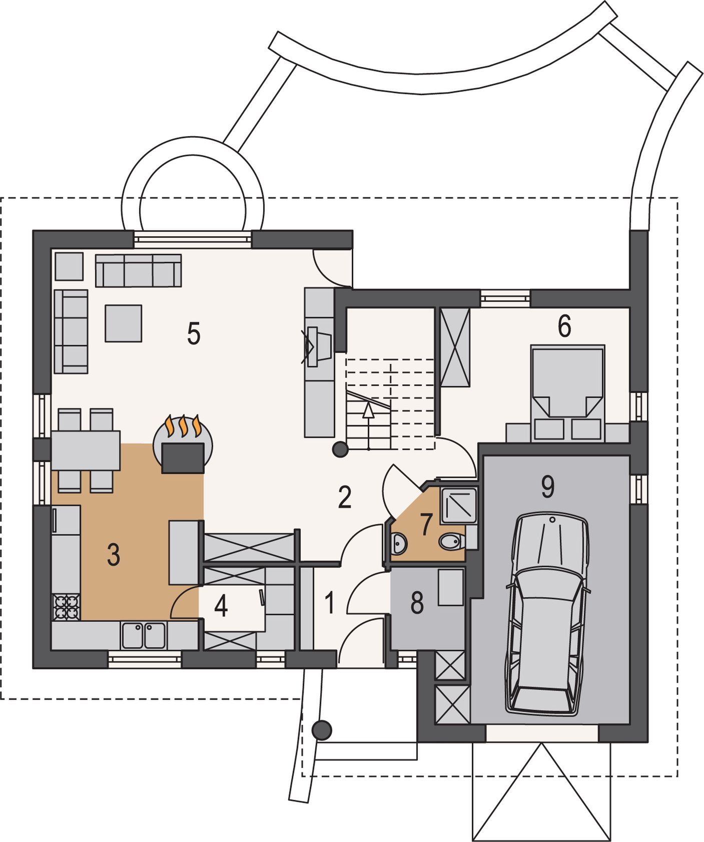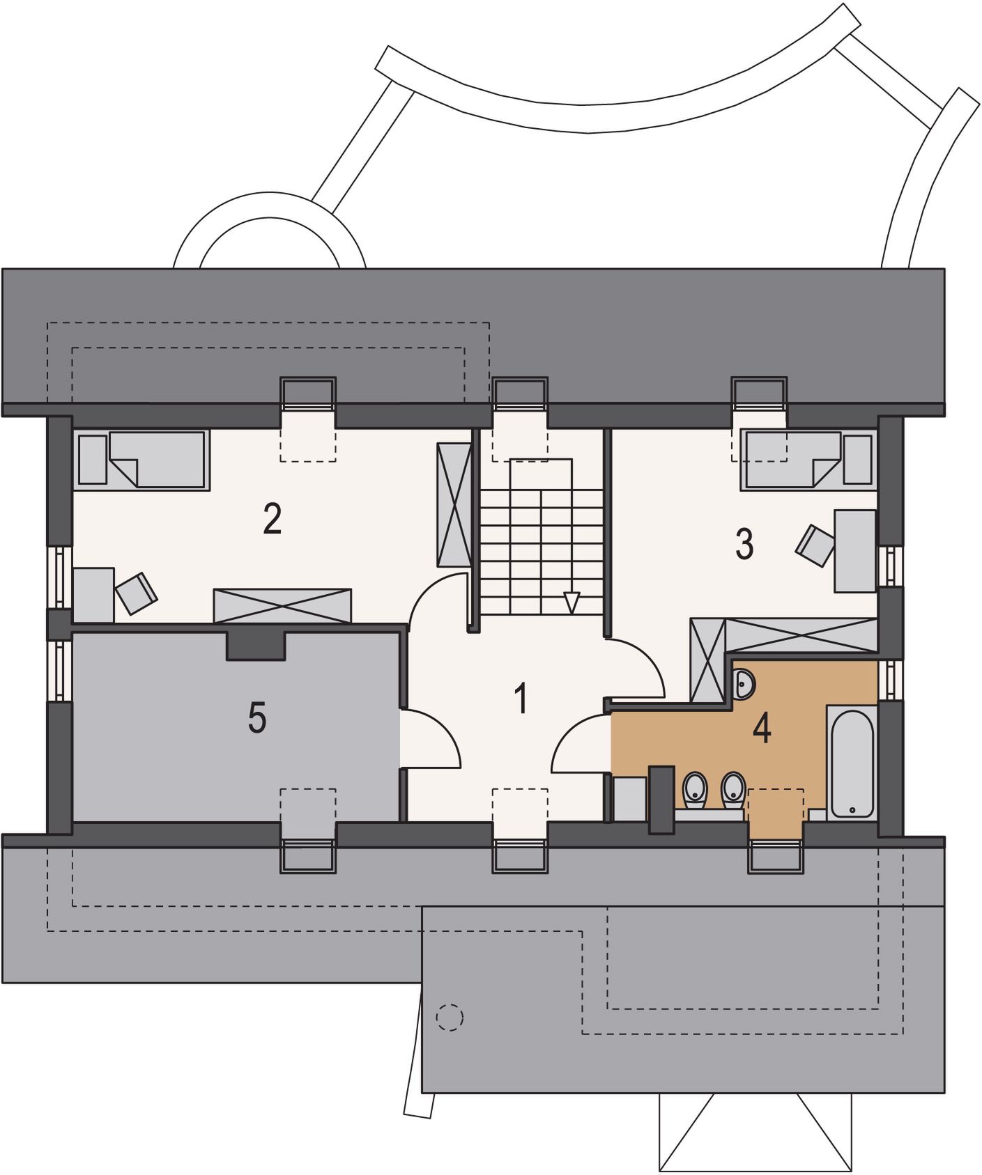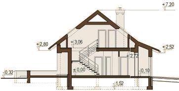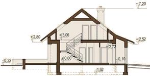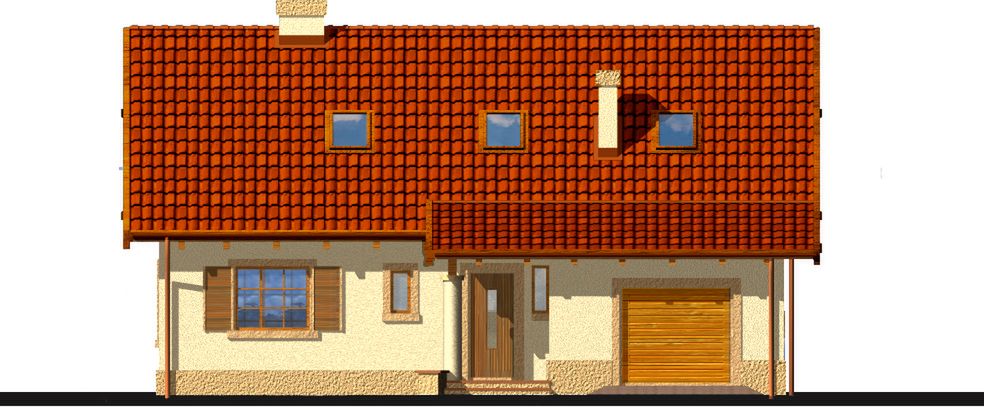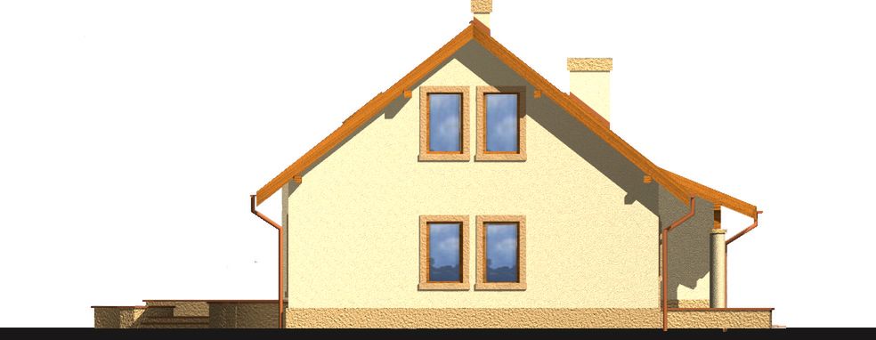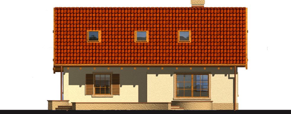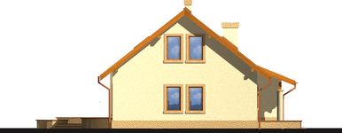 Graficzne opracowanie rzutów poglądowych widocznych na karcie projektu zostało wykonane przez Extradom.pl. Prezentowane przez Extradom.pl wizualizacje wykonane zostały przez autora projektu i należy poczytywać je jedynie za przykład i propozycję wykończenia, wizję architektoniczną autora projektu. Ostateczne wykończenie budynku może nastąpić na wiele sposobów. Szczegółowe rozwiązania zastosowane w oferowanej dokumentacji - w tym również ilość, lokalizacje i wygląd okien, drzwi, kominów - mogą w niewielkim stopniu różnić się od prezentowanej wizualizacji budynku.