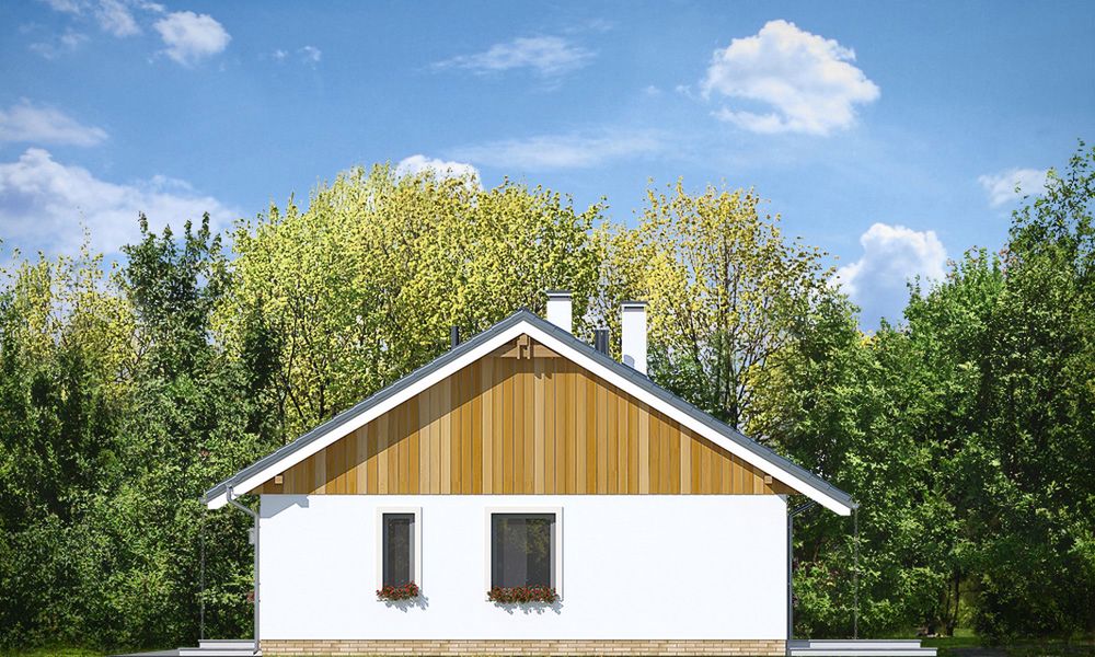 Graficzne opracowanie rzutów poglądowych widocznych na karcie projektu zostało wykonane przez Extradom.pl. Prezentowane przez Extradom.pl wizualizacje wykonane zostały przez autora projektu i należy poczytywać je jedynie za przykład i propozycję wykończenia, wizję architektoniczną autora projektu. Ostateczne wykończenie budynku może nastąpić na wiele sposobów. Szczegółowe rozwiązania zastosowane w oferowanej dokumentacji - w tym również ilość, lokalizacje i wygląd okien, drzwi, kominów - mogą w niewielkim stopniu różnić się od prezentowanej wizualizacji budynku.
