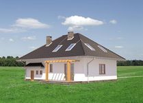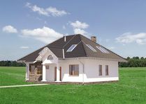 Graficzne opracowanie rzutów poglądowych widocznych na karcie projektu zostało wykonane przez Extradom.pl. Prezentowane przez Extradom.pl wizualizacje wykonane zostały przez autora projektu i należy poczytywać je jedynie za przykład i propozycję wykończenia, wizję architektoniczną autora projektu. Ostateczne wykończenie budynku może nastąpić na wiele sposobów. Szczegółowe rozwiązania zastosowane w oferowanej dokumentacji - w tym również ilość, lokalizacje i wygląd okien, drzwi, kominów - mogą w niewielkim stopniu różnić się od prezentowanej wizualizacji budynku.