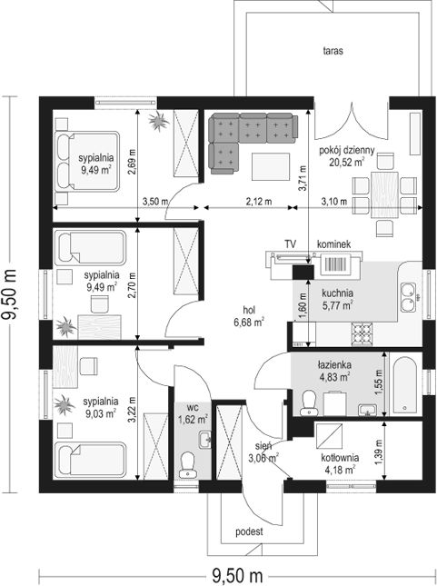 Istnieje możliwość zaadaptowania tego projektu do technologii prefabrykowanej/modułowej i budowy nawet w 6 miesięcy ze stałym kosztem budowy