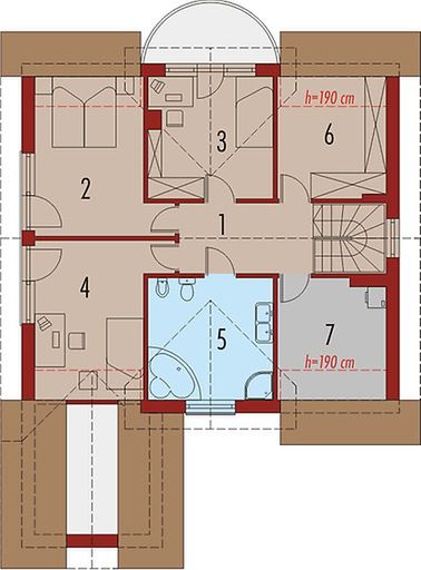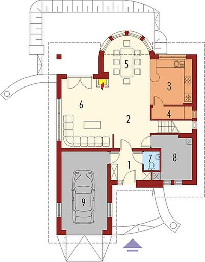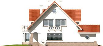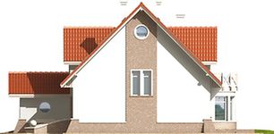 Graficzne opracowanie rzutów poglądowych widocznych na karcie projektu zostało wykonane przez Extradom.pl. Prezentowane przez Extradom.pl wizualizacje wykonane zostały przez autora projektu i należy poczytywać je jedynie za przykład i propozycję wykończenia, wizję architektoniczną autora projektu. Ostateczne wykończenie budynku może nastąpić na wiele sposobów. Szczegółowe rozwiązania zastosowane w oferowanej dokumentacji - w tym również ilość, lokalizacje i wygląd okien, drzwi, kominów - mogą w niewielkim stopniu różnić się od prezentowanej wizualizacji budynku.