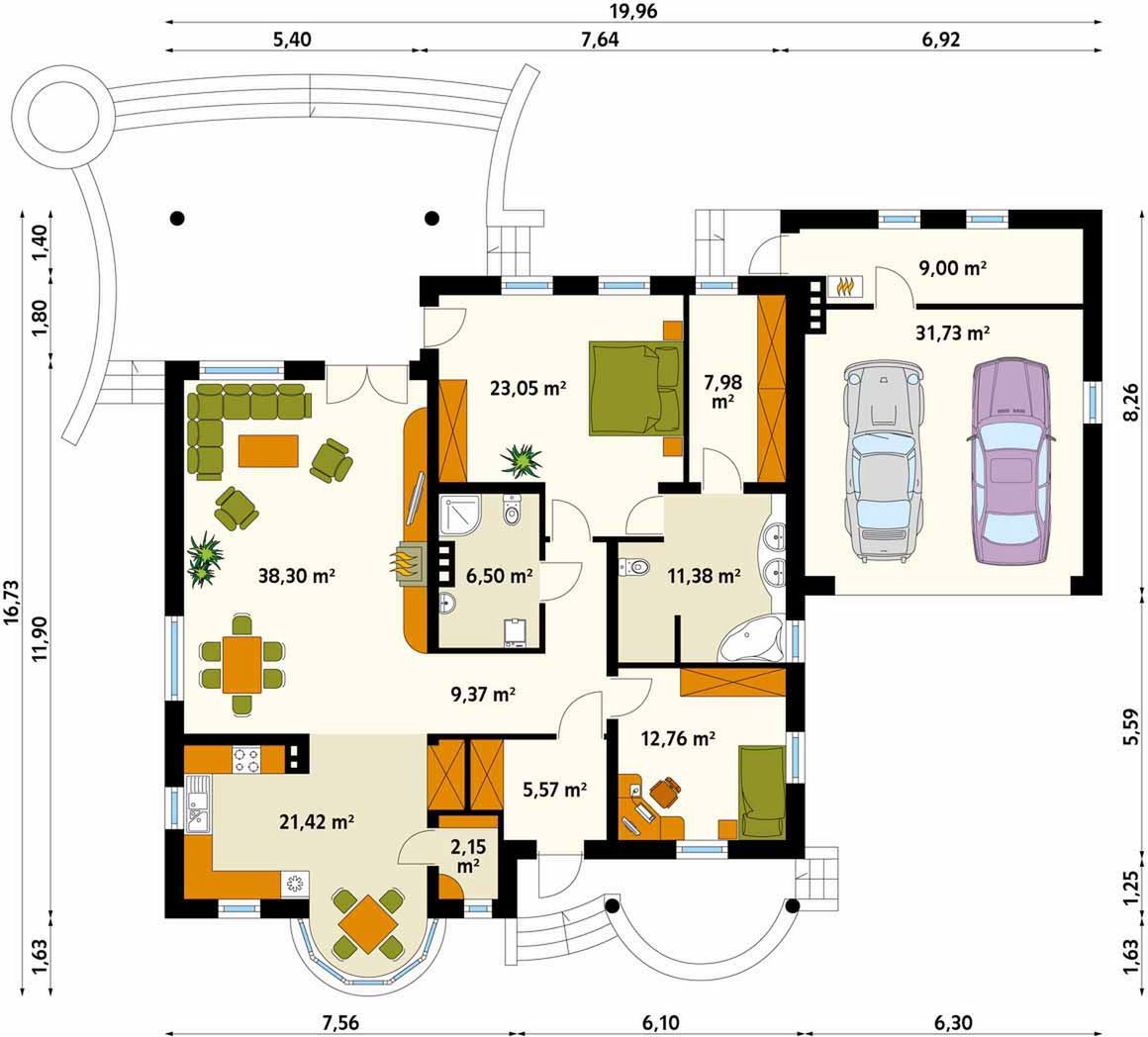 Graficzne opracowanie rzutów poglądowych widocznych na karcie projektu zostało wykonane przez Extradom.pl. Prezentowane przez Extradom.pl wizualizacje wykonane zostały przez autora projektu i należy poczytywać je jedynie za przykład i propozycję wykończenia, wizję architektoniczną autora projektu. Ostateczne wykończenie budynku może nastąpić na wiele sposobów. Szczegółowe rozwiązania zastosowane w oferowanej dokumentacji - w tym również ilość, lokalizacje i wygląd okien, drzwi, kominów - mogą w niewielkim stopniu różnić się od prezentowanej wizualizacji budynku.