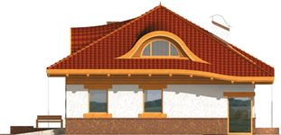 Graficzne opracowanie rzutów poglądowych widocznych na karcie projektu zostało wykonane przez Extradom.pl. Prezentowane przez Extradom.pl wizualizacje wykonane zostały przez autora projektu i należy poczytywać je jedynie za przykład i propozycję wykończenia, wizję architektoniczną autora projektu. Ostateczne wykończenie budynku może nastąpić na wiele sposobów. Szczegółowe rozwiązania zastosowane w oferowanej dokumentacji - w tym również ilość, lokalizacje i wygląd okien, drzwi, kominów - mogą w niewielkim stopniu różnić się od prezentowanej wizualizacji budynku.
