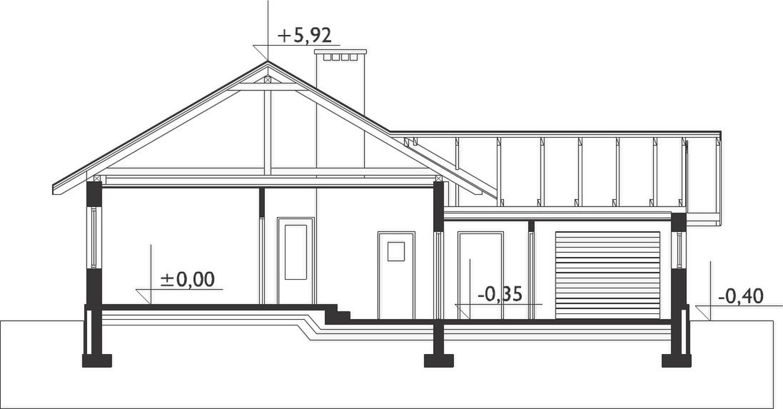 Wersja technologiczna: murowana - beton komórkowy. Strop: drewniany, powiązany z konstrukcją dachu. Typ schodów: brak. Konstrukcja dachu: drewniana krokwiowa. Typ ogrzewania: Kocioł na gaz. Dostępna wersja z pompą ciepła: Tak. Ściany zewnętrzne: 30 cm beton komórkowy. Ściany wewnętrzne: 24 cm beton komórkowy. Ściany wewnętrzne działowe: 11 cm beton komórkowy.