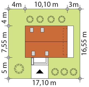 Graficzne opracowanie rzutów poglądowych widocznych na karcie projektu zostało wykonane przez Extradom.pl. Prezentowane przez Extradom.pl wizualizacje wykonane zostały przez autora projektu i należy poczytywać je jedynie za przykład i propozycję wykończenia, wizję architektoniczną autora projektu. Ostateczne wykończenie budynku może nastąpić na wiele sposobów. Szczegółowe rozwiązania zastosowane w oferowanej dokumentacji - w tym również ilość, lokalizacje i wygląd okien, drzwi, kominów - mogą w niewielkim stopniu różnić się od prezentowanej wizualizacji budynku.
