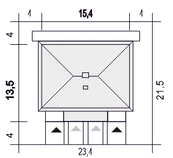 Graficzne opracowanie rzutów poglądowych widocznych na karcie projektu zostało wykonane przez Extradom.pl. Prezentowane przez Extradom.pl wizualizacje wykonane zostały przez autora projektu i należy poczytywać je jedynie za przykład i propozycję wykończenia, wizję architektoniczną autora projektu. Ostateczne wykończenie budynku może nastąpić na wiele sposobów. Szczegółowe rozwiązania zastosowane w oferowanej dokumentacji - w tym również ilość, lokalizacje i wygląd okien, drzwi, kominów - mogą w niewielkim stopniu różnić się od prezentowanej wizualizacji budynku.