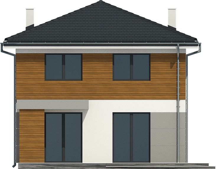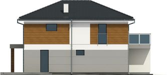 Graficzne opracowanie rzutów poglądowych widocznych na karcie projektu zostało wykonane przez Extradom.pl. Prezentowane przez Extradom.pl wizualizacje wykonane zostały przez autora projektu i należy poczytywać je jedynie za przykład i propozycję wykończenia, wizję architektoniczną autora projektu. Ostateczne wykończenie budynku może nastąpić na wiele sposobów. Szczegółowe rozwiązania zastosowane w oferowanej dokumentacji - w tym również ilość, lokalizacje i wygląd okien, drzwi, kominów - mogą w niewielkim stopniu różnić się od prezentowanej wizualizacji budynku.