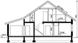 Ściany: konstrukcyjne - bloczki z betonu komórkowego 24 cm ; ocieplenie- styropian 12 cm; Strop gęsto żebrowy Teriva; Dachówka cementowa; Więźba drewniana; Tynki mineralne.