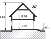 Graficzne opracowanie rzutów poglądowych widocznych na karcie projektu zostało wykonane przez Extradom.pl. Prezentowane przez Extradom.pl wizualizacje wykonane zostały przez autora projektu i należy poczytywać je jedynie za przykład i propozycję wykończenia, wizję architektoniczną autora projektu. Ostateczne wykończenie budynku może nastąpić na wiele sposobów. Szczegółowe rozwiązania zastosowane w oferowanej dokumentacji - w tym również ilość, lokalizacje i wygląd okien, drzwi, kominów - mogą w niewielkim stopniu różnić się od prezentowanej wizualizacji budynku.