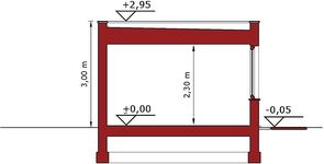Ściany: bloczek gazobetonowy 24 cm, tynk. Strop: żelbetowy, gęstożebrowy Teriva. Dach: stropodach płaski kąt nachylenia 2 stopnie, pokrycie dachu papa o podwyższonej odporności ogniowej ocieplenie stropu: wełna mineralna.