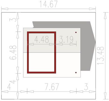 Ściany: bloczek gazobetonowy 24 cm, tynk. Strop: płyty GK podwieszane do pasa dolnego wiązara dachowego. Dach: dwuspadowy, więźba tradycyjna, drewniana, kąt nachylenia 35 stopni ocieplenie stropu: wełna mineralna ISOVER Uni Mata.
