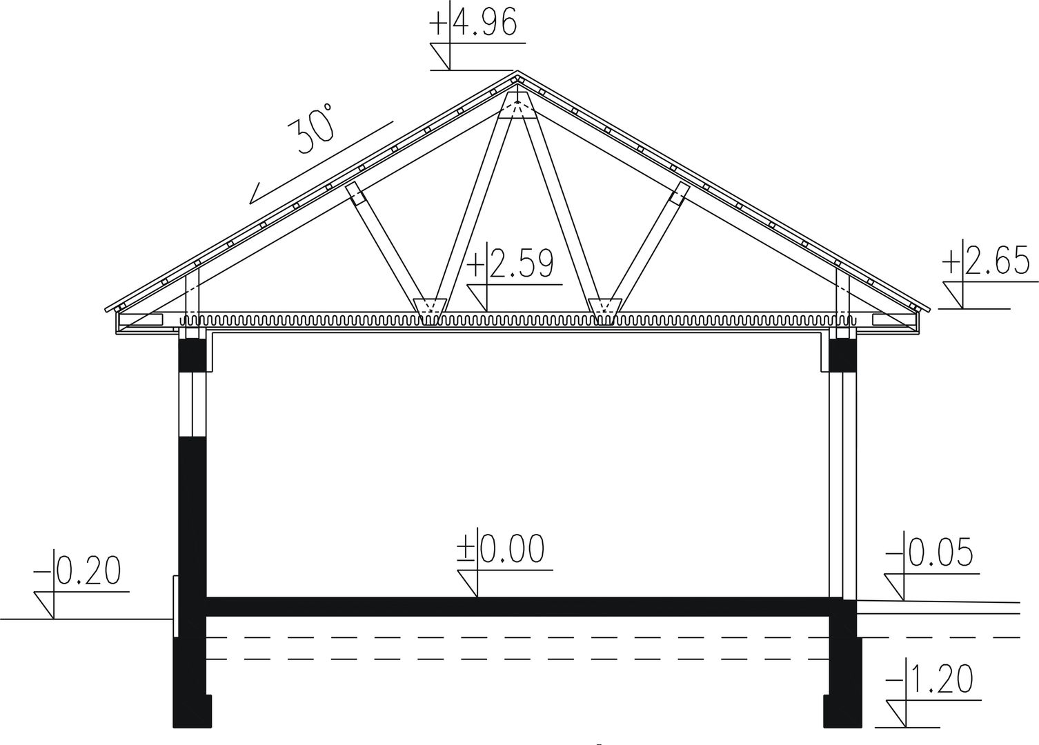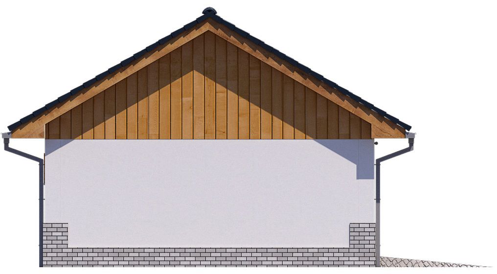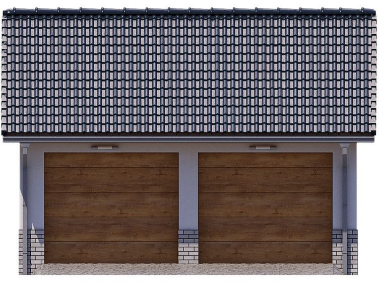 Fundamenty betonowe wylewane. Ściany zewnętrzne garażu murowane z bloczków z betonu komórkowego. Stropodach – lekkie wiązary drewniane. Pokrycie – dachówka, blacha dachówkowa lub gont papowy. Stolarka typowa, drewniana lub z PCV.