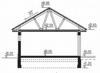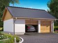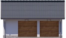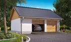 Fundamenty betonowe wylewane. Ściany zewnętrzne garażu murowane z bloczków z betonu komórkowego. Stropodach – lekkie wiązary drewniane. Pokrycie – dachówka, blacha dachówkowa lub gont papowy. Stolarka typowa, drewniana lub z PCV.