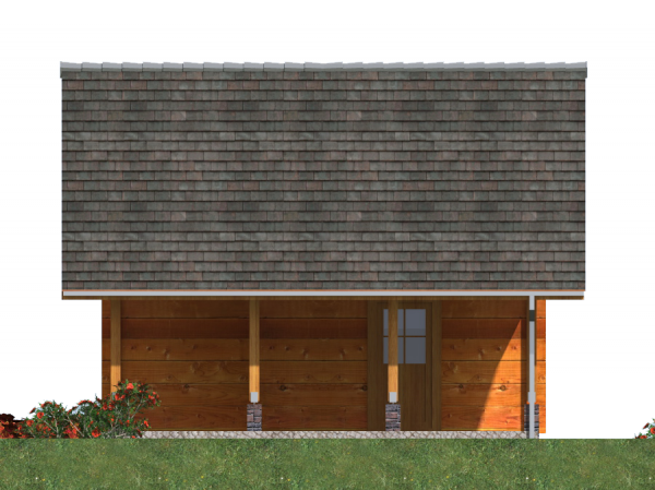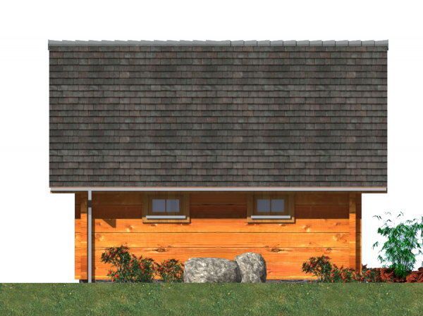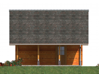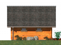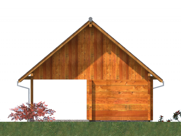 Fundamenty: żelbetowe, wylewane. Ściany zewnętrzne: z bali 12 cm, 16 cm. Pokrycie dachu: gont bitumiczny. Nachylenie dachu: 40°