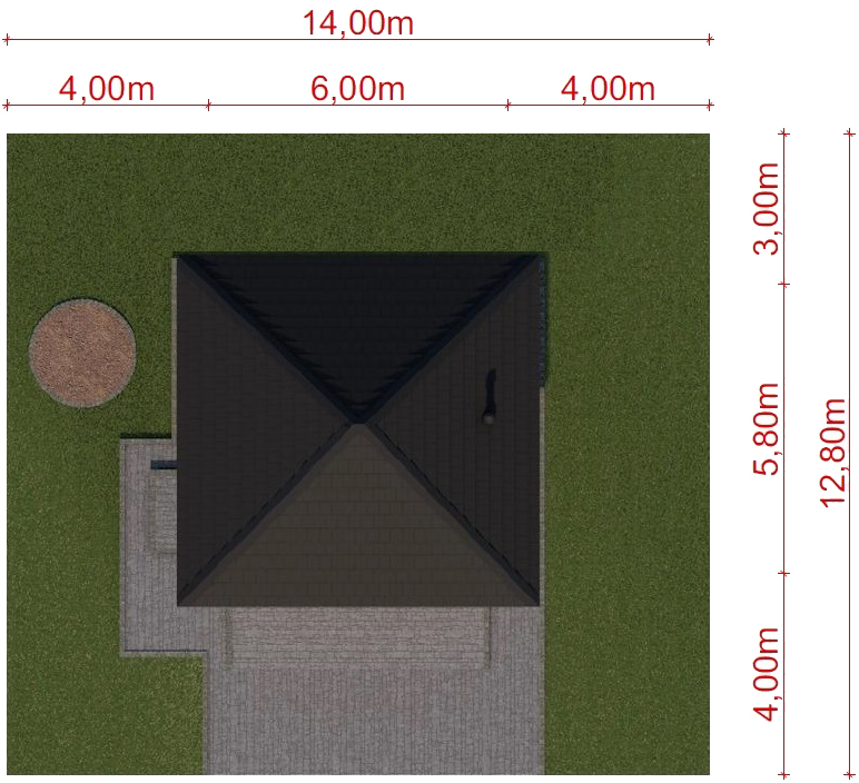 Graficzne opracowanie rzutów poglądowych widocznych na karcie projektu zostało wykonane przez Extradom.pl. Prezentowane przez Extradom.pl wizualizacje wykonane zostały przez autora projektu i należy poczytywać je jedynie za przykład i propozycję wykończenia, wizję architektoniczną autora projektu. Ostateczne wykończenie budynku może nastąpić na wiele sposobów. Szczegółowe rozwiązania zastosowane w oferowanej dokumentacji - w tym również ilość, lokalizacje i wygląd okien, drzwi, kominów - mogą w niewielkim stopniu różnić się od prezentowanej wizualizacji budynku.