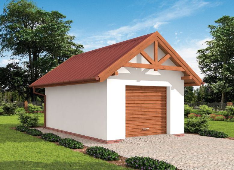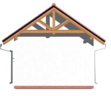 Ściany zewnętrzne nośne murowane grubości 25 cm. Wszystkie ściany wykonane pustaków ceramicznych. Więźba dachowa drewniana. Pokrycie dachu dachówka cementowa bądź ceramiczna. Wymiar bramy garażowej 2,5 x 2,2 m.