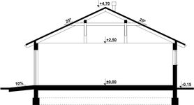 Graficzne opracowanie rzutów poglądowych widocznych na karcie projektu zostało wykonane przez Extradom.pl. Prezentowane przez Extradom.pl wizualizacje wykonane zostały przez autora projektu i należy poczytywać je jedynie za przykład i propozycję wykończenia, wizję architektoniczną autora projektu. Ostateczne wykończenie budynku może nastąpić na wiele sposobów. Szczegółowe rozwiązania zastosowane w oferowanej dokumentacji - w tym również ilość, lokalizacje i wygląd okien, drzwi, kominów - mogą w niewielkim stopniu różnić się od prezentowanej wizualizacji budynku.