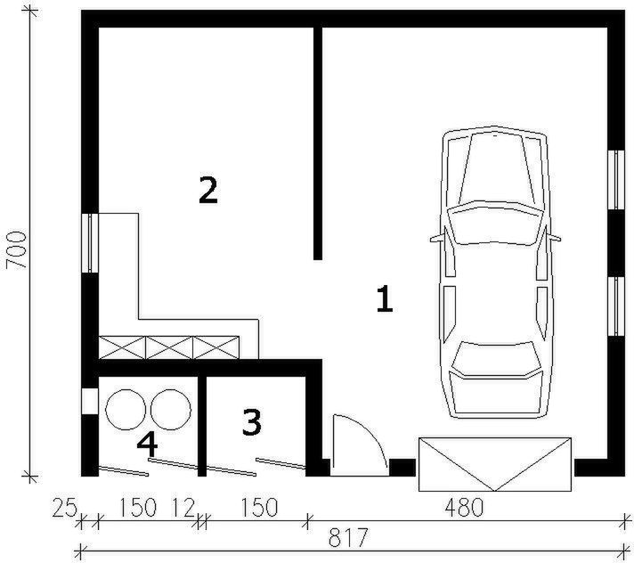 G115 garaż jednostanowiskowy z pomieszczeniem gospodarczym SLN1208