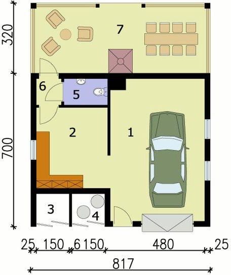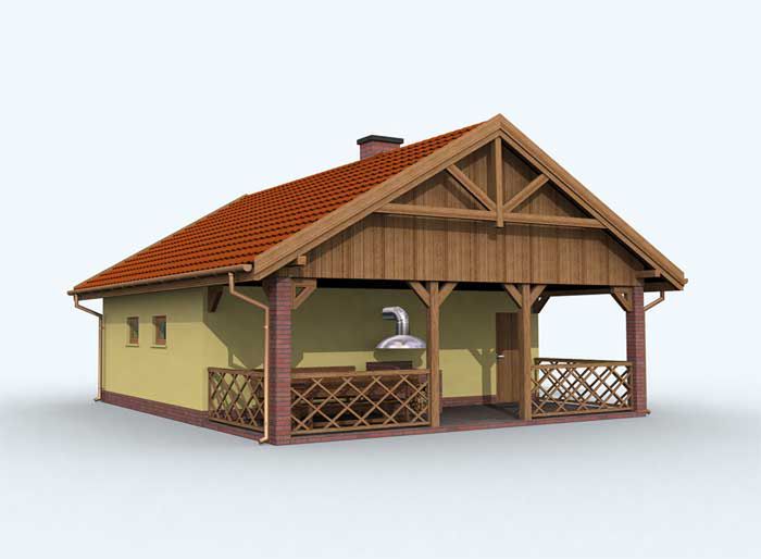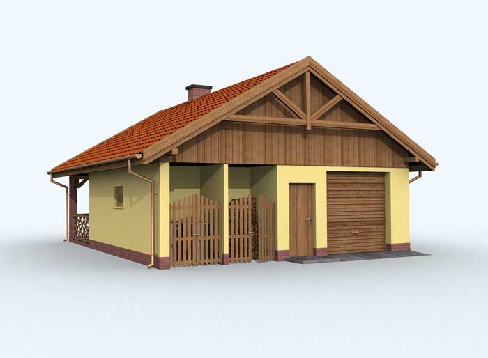 G121 garaż jednostanowiskowy z werandą i pomieszczeniem gospodarczym SLN1218